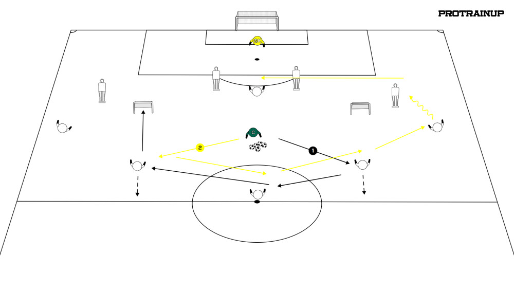 Vingrinājums - trening formacyjny-podanie progresywne z pierwszej oraz prowadzenie piłki z dośrodkowaniem