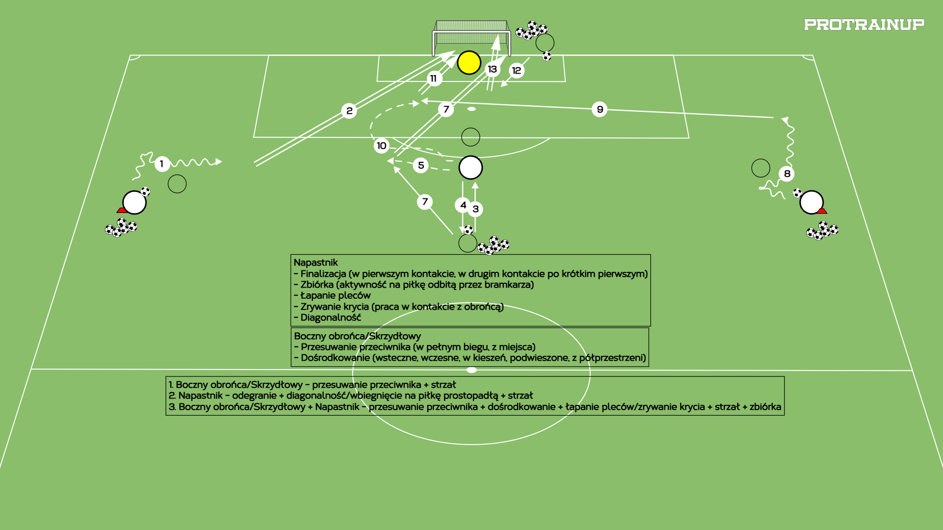 Ćwiczenie - Trening formacyjny napastnik - skrzydłowy/boczny obrońca. DR