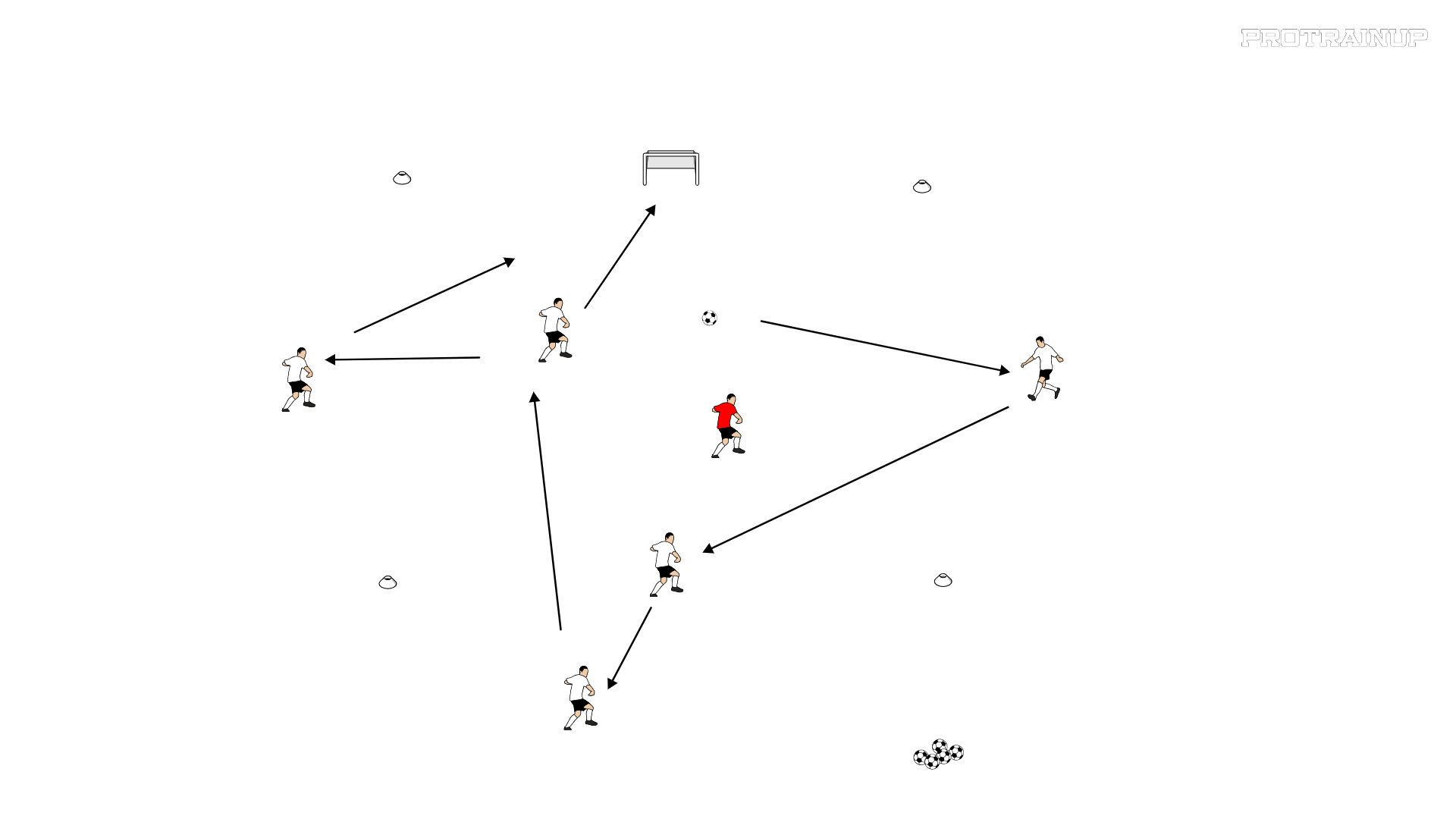 GRA WEWNĄTRZ 1X1, 2X1 W ZALEŻNOŚCI OD LICZEBNOŚCI GRUPY ZADANIEM POSIADAJACYCH PIŁKĘ WEWNĄTRZ POLA JEST PODANIE DO ZEWNETRZNYCH STOJACYCH PO LEWEJ PRAWEJ STRONIE Z TYŁU TAK BY UTRZYMAC SIE PRZY PIŁCE I W KOŃCOWEJ FAZIE SKIEROWAC PIŁKĘ DO MAŁEJ BRAMKI. WARIANT DWIE GRUPY . MOZNA GRAC Z 3 LUB 4 ZEWNETRZNYMI. ZMIANA ŚRODKOWYCH